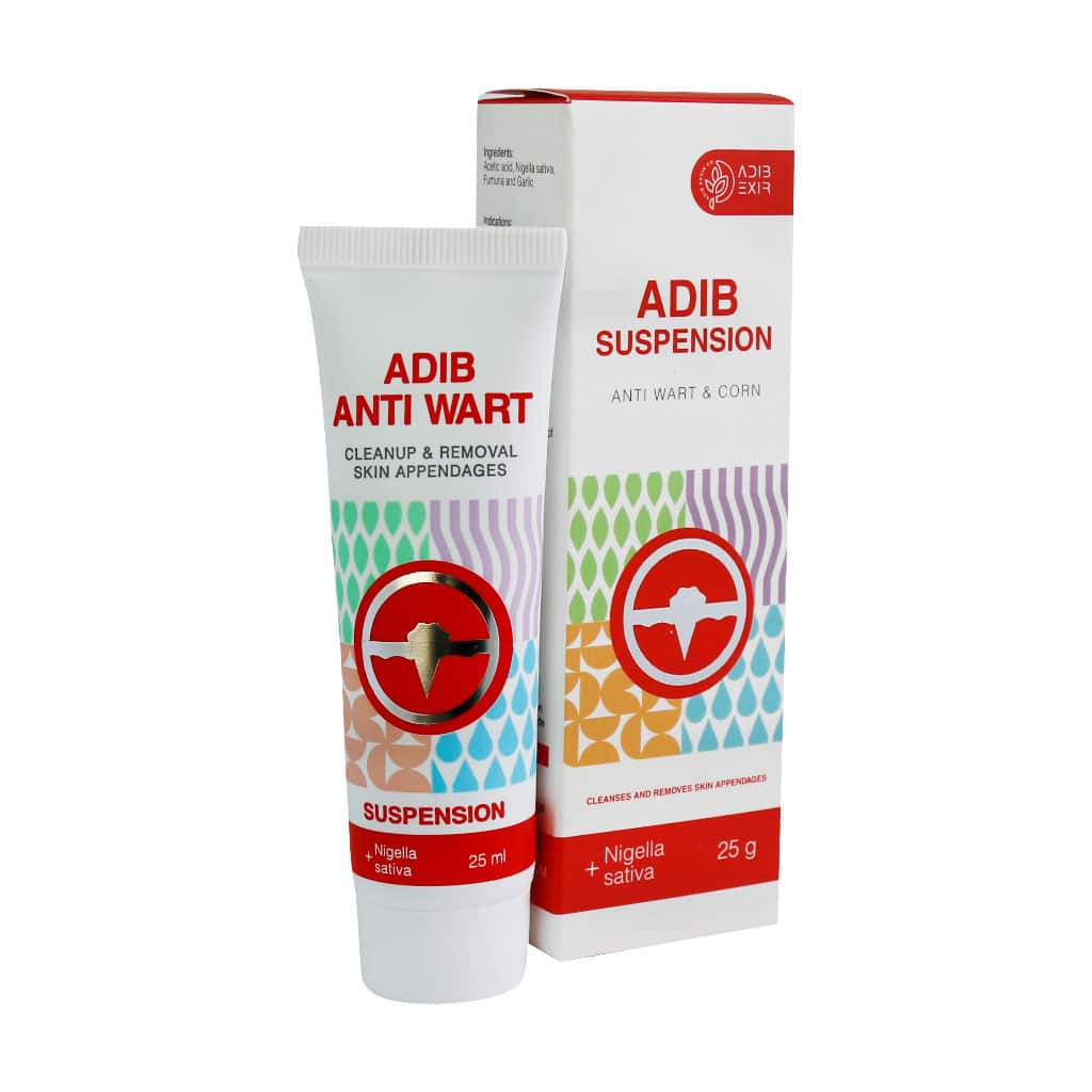 سوسپانسیون ضد میخچه و زگیل ادیب با دارا بودن عصارههای سه گیاه دارویی سیر، شاهتره و سیاهدانه، محصولی موثر برای برطرف کردن میخچه و زگیل است. این دارو بدون عوارض جانبی و بدون بر جای گذاشتن آثار زخم بر روی پوست، زگیل و میخچه را بهطور کامل حذف میکند. میخچه که از شایعترین مشکلات پوستی است معمولا به دلیل استفاده از کفش نامناسب ایجاد میشود. از دیگر عوامل موثر در بوجود آمدن میخچه میتوان به عدم رعایت بهداشت پا، وجود اشکال در استخوانبندی و استفاده از جوراب نامناسب، خصوصا جورابهای پلاستیکی اشاره کرد.