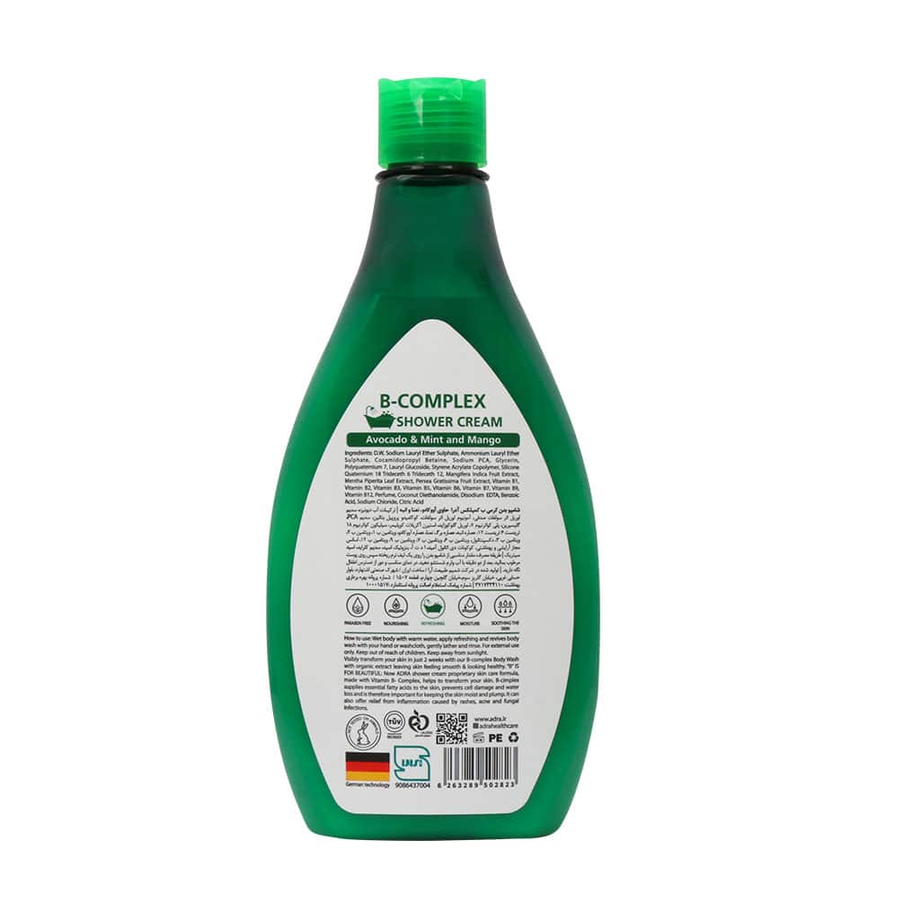 شامپو بدن کرمی آووکادو و نعنا آدرا ، منافذ پوست را از هرگونه آلودگی پاک میسازد. همانطور که میدانید آب به تنهایی قادر به پاکسازی پوست نیست. به همین دلیل میبایست از صابون و یا شامپوهای بدن برای تمیز کردن خارجیترین لایه پوست استفاده نمود. خوشبختانه شامپو بدن کرمی ب کمپلکس آدرا علاوه بر تمیز کردن منافذ، شادابی و طراوات را به پوستتان باز میگرداند. این شامپو بدن، رطوبت مورد نیاز سلولهای پوستی را تامین نموده و پوست را سفت و شفاف میکند. یکی از ترکیبات اصلی این فرآورده ویتامینهای گروه B است. این ویتامینها رطوبت لایه اپیدرم پوست را حفظ نموده و از آسیب پوستی مرتبط با سن جلوگیری میکنند. ویتامینهای گروه ب، تولید رنگدانه در پوست را کنترل نموده و مانع از تغییر رنگ آن میشوند. همچنین ب کمپلکس روند بهبود زخمهای پوستی را سرعت بخشیده و به ترمیم بافت آسیب دیده میپردازد.
