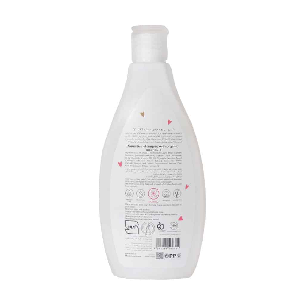 شامپو سر بچه عصاره کالاندولا آدرا و عصاره برگ چای سبز مواد مغذی مورد نیاز را به موی سر می‌رساند. این محصول فاقد پارابن بوده و ضمن تمیز کردن موی کودک از سوزش چشم جلوگیری می‌کند.