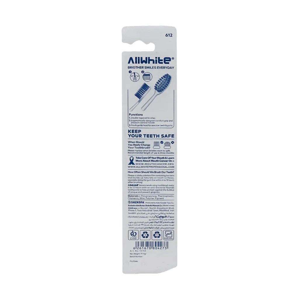 - دارای برس ساخته شده از الیاف دو سر مخروطی جهت پاکسازی بهتر دندانها
