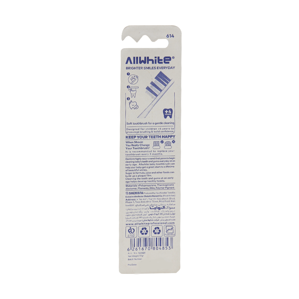 مسواک کودک بالای 4 سال آل وایت با برس نرم