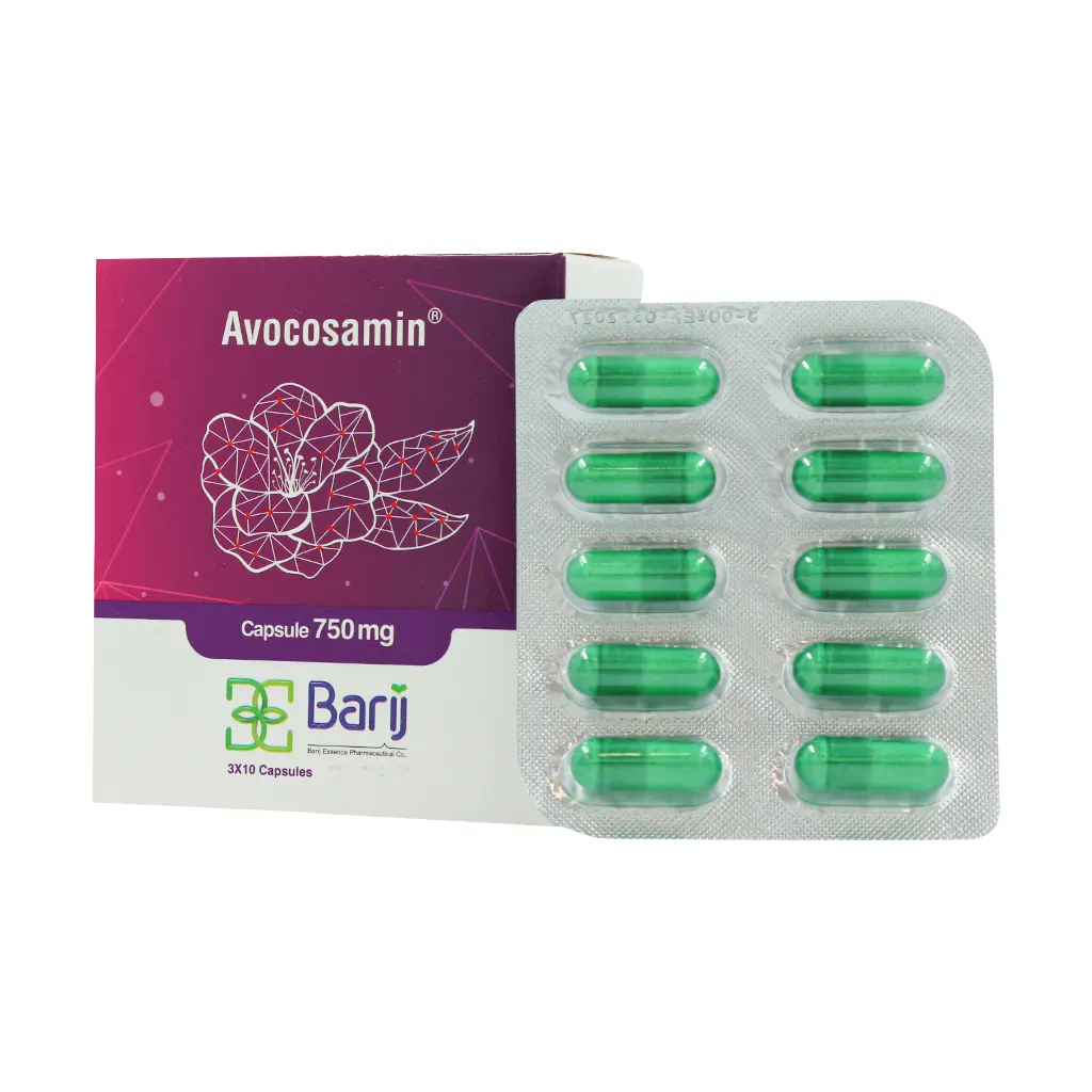 کپسول آووکوزامین 750 میلی گرم باریج مکملی گیاهی و موثر برای کمک به بهبود عملکرد مفاصل و کاهش التهاب است که در ادامه به بررسی ترکیبات موثر موجود در آن میپردازیم: