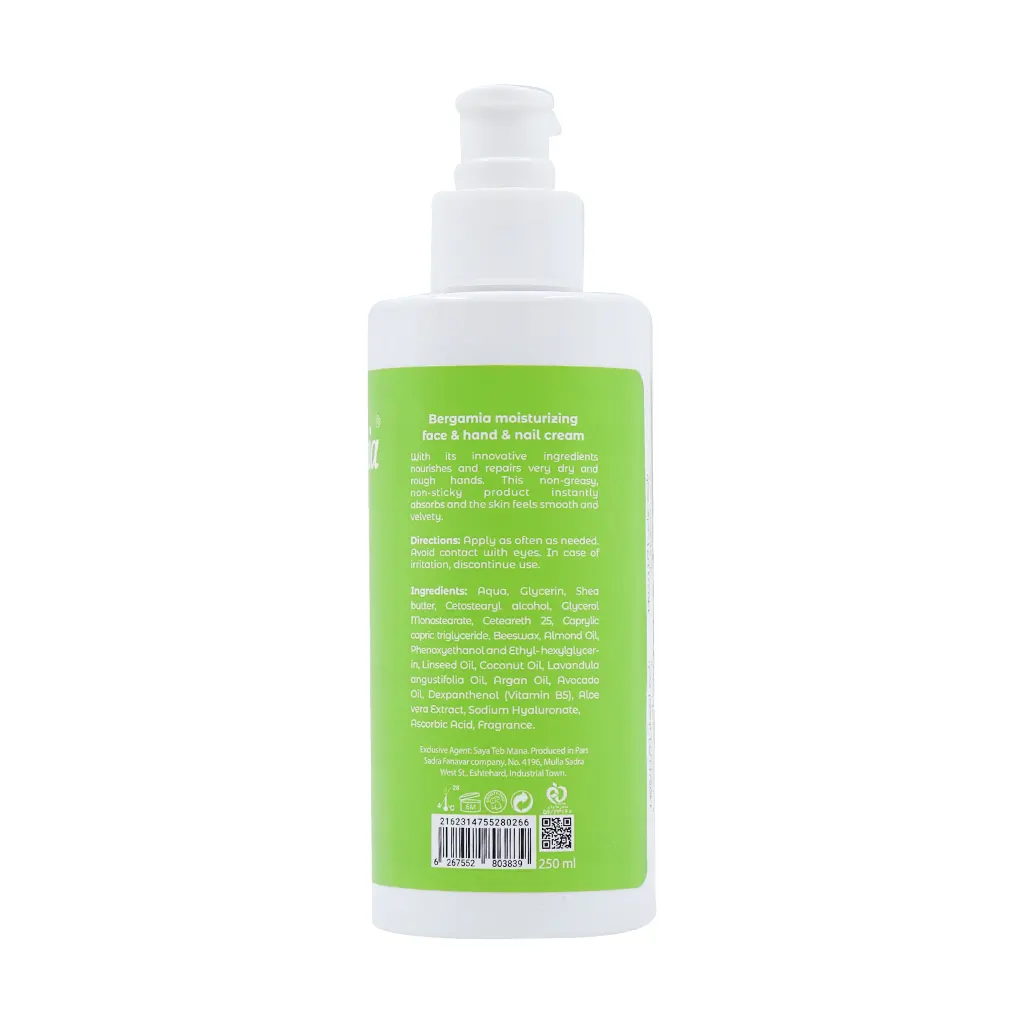 کرم مرطوب کننده پمپی دست و ناخن برگامیا حاوی روغن کتان 250 میلی لیتر