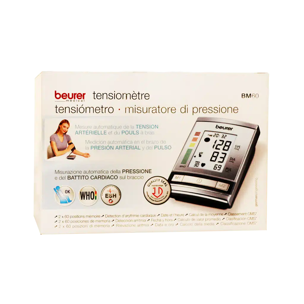 فشارسنج دیجیتالی بازویی مدل BM 60 بیورر فشار خون را اندازه گیری کرده و تعداد ضربان قلب را مورد سنجش قرار می دهد.