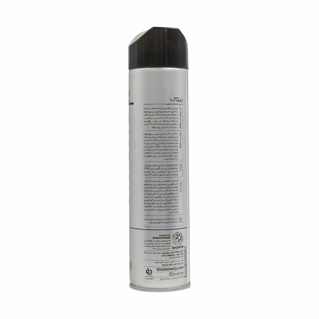 اسپری حالت دهنده بسیار قوی بیول را دور از دسترس اطفال نگهداری کنید.