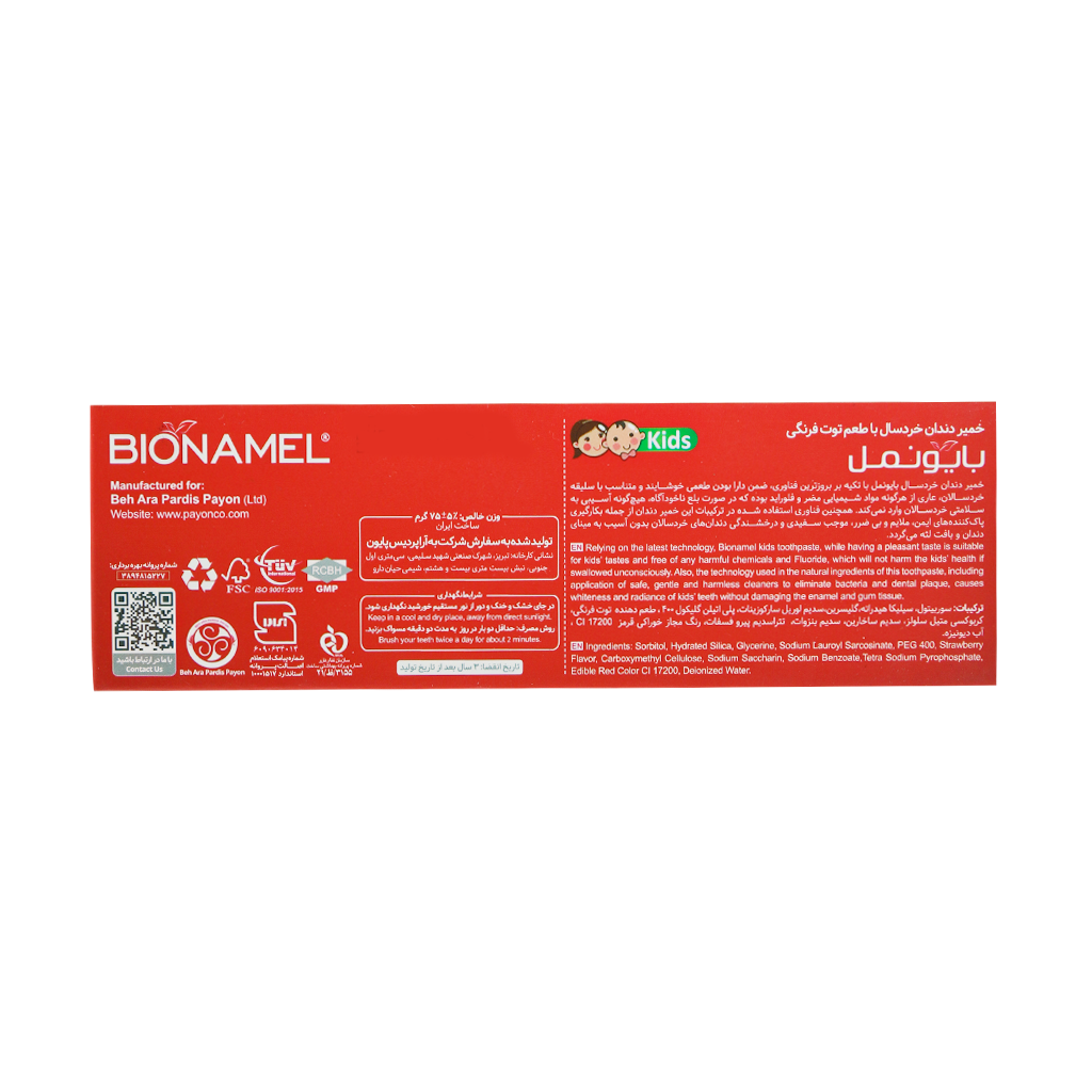 (1 دیدگاه) برای خمیر دندان کودک 2 تا 6 سال بایونمل 75 گرم