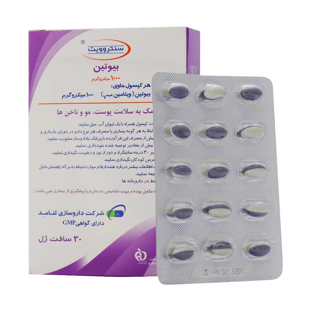 روزانه یک عدد کپسول بیوتین 1000 سنتروویت همراه با یک لیوان آب میل نمایید.