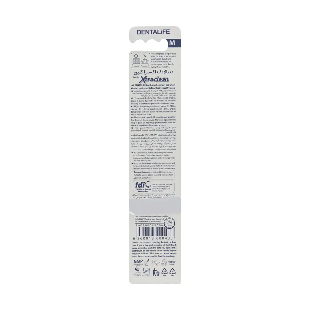 مسواک دنتالایف مدل Xtra Clean با برس متوسط یکی از بهترین انتخابها برای افرادی است که همواره به دنبال محصولی با کیفیت، استاندارد و مورد تایید هستند. این محصول توسط شرکت معتبر بهداشت و سلامت آریا اندیشان تولید شده که سابقهای درخشان در زمینه تولید محصولات بهداشتی دارد و ضمانتی برای اطمینان خاطر شما است.