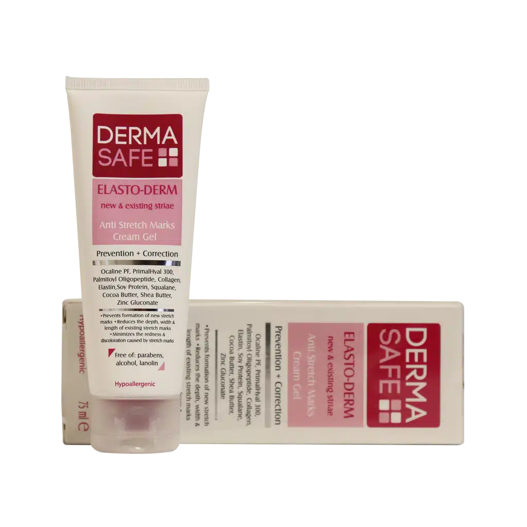 ژل کرم ضد ترک بدن درماسیف رطوبت رسان و التیام بخش پوست بوده و باعث افزایش الاستیسیته و انعطاف پذیری پوست با تحریک سنتز کلاژن و الاستین می گردد.