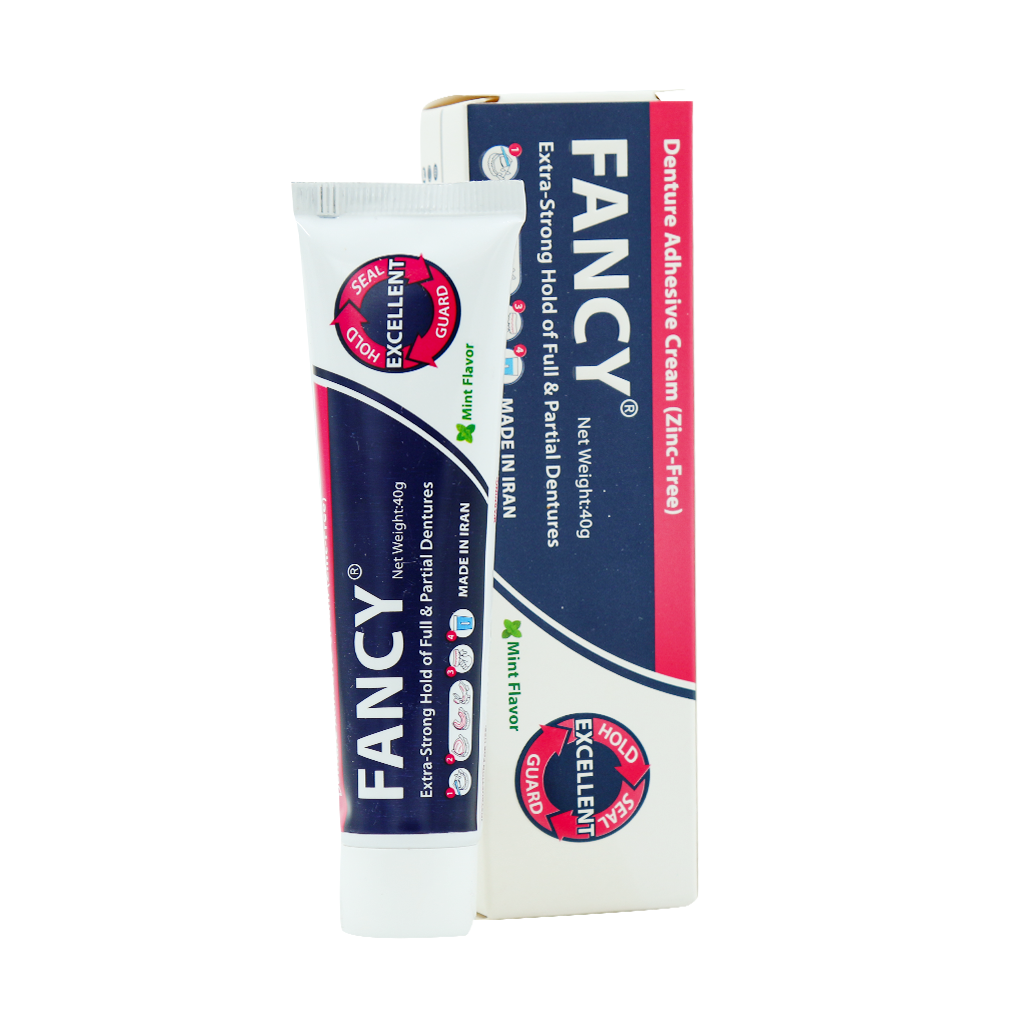 چسب دندان مصنوعی فنسی یک محصول ایرانی که با فرمولاسیون ایمن و سازگار با لثههای حساس به تثبیت دندانهای مصنوعی کمک میکند و احساس راحتی بیشتری برای کاربران فراهم میکند. این چسب با طعم نعناع ملایم از بوی بد دهان جلوگیری میکند.
