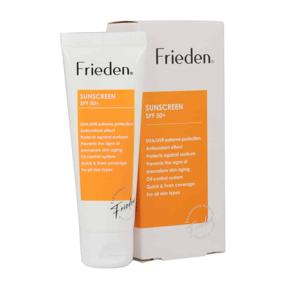 تمامی افراد چه خانمها چه آقایان باید در روتین پوستی خود از کرم ضد آفتاب استفاده کنند. در این میان کرم ضد آفتاب SPF50 فریدن مناسب انواع پوست نیز از پوست شما در برابر اشعههای مضر آفتاب محافظت نموده و با بافت بسیار سبک و زود جذب خود پوستی صاف و شفاف را برایتان رقم میزند. این کرم ضد آفتاب ترشح چربی پوست را کنترل نموده و بدین صورت تاثیر بسزایی در پیشگیری از ایجاد جوش دارد. ترکیبات آنتی اکسیدان به کار رفته در محصول نیز به محافظت از پوست و تقویت بافت سلولی کمک بسیاری میکند. رفع چین و چروک و افزایش استحکام و شادابی پوست از دیگر مزایای کرم ضد آفتاب فریدن است.
