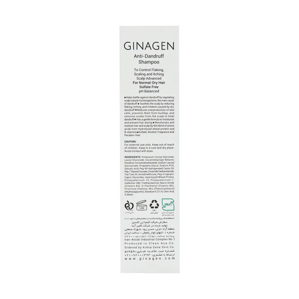 ترکیبات شامپو ضد شوره موی خشک و نرمال ژیناژن