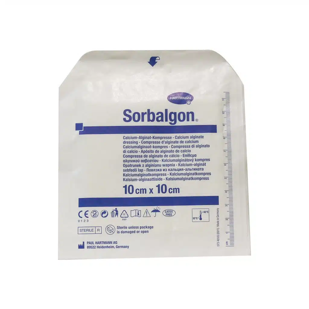 پانسمان Sorbalgon از فیبرهای آلژینات کلسیم ساخته شده است که در اثر تماس با نمک سدیم موجود در خون همچنین اگزودا زخم یک لایه هیدروفیلی غیر چسبنده ایجاد می کند. این لایه ژل روند التیام زخم را بهبود می بخشد. پانسمان سوربالگن درسایز های مختلف بسته به نیاز بیمار فراهم شده است. از پانسمان سوربالگن جهت بهبود زخمهای خارجی و حاوی اگزودا همچنین درمان خونریزی های زخم مناسب است. ژل تشکیل یافته پروسه بهبود زخم را بهبود میبخشد. از این پانسمان بر روی انواع زخمها مانند زخم های ایجاد شده در اثر حادثه و تومور های جراحی، سوختگی ها، زخم های عمیق، آبسه و... استفاده میشود. برای زخم های عمیق و فیستول Sorbalgon T در دسترس است.