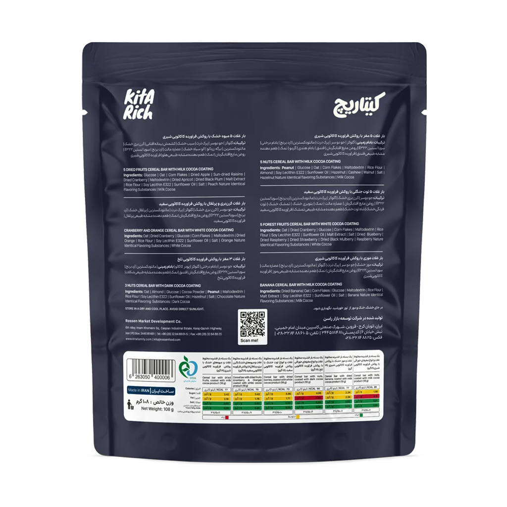 غلات بار مینی میکس کیتاریچ مجموعهای از شش طعم متنوع و انتخاب شده از بهترین میوهها، مغزها و روکشهای کاکائویی است که تجربهای متفاوت از یک میان وعده سالم، خوش طعم و انرژی بخش را ایجاد میکند. این بسته ترکیبی از بارهای غلات با روکش کاکائویی، شیری، سفید و تلخ است تا هر سلیقه غذایی را راضی کند؛ از عاشقان طعم میوههای جنگلی گرفته تا کسانی که مزه تلخ جذاب کاکائو یا عطر دلچسب موز و پرتقال را ترجیح میدهند. اگر در سبد تغذیه روزانه خود از این پک غلات بار استفاده نمایید، یک میان وعده سالم، کامل و با هضم راحت خواهید داشتید که انرژی روزانه شما را به صورت چشمگیری افزایش میدهد.