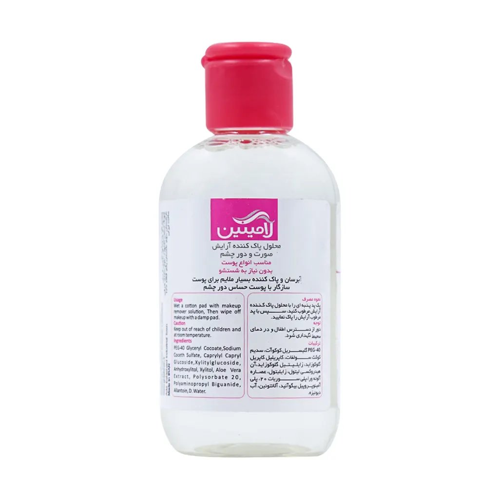 محلول پاک کننده آرایش صورت و دور چشم لامینین فاقد پارابن و اسانس بوده و هرگونه آلودگیهای سطح پوست، چربی اضافی و آرایش را پاک میکند. این محصول با اینکه آرایشهای ضد آب را نیز به طور کامل پاک میکند اما به هیچ وجه سبب تحریک پوست یا ایجاد خشکی نمیشود. از دیگر خواص محلول لامینین میتوان به آبرسانی، مرطوب کنندگی و ضد پیری آن اشاره نمود. عصاره آلوئه ورا از زمان قدیم جهت درمان بیماریهای پوستی استفاده شده است. ژل داخلی استخراج شده از برگ آلوئه ورا بهترین راه طبیعی جهت لایه برداری پوست است. همچنین استفاده از محلول پاک کننده آرایش چشم حاوی عصاره آلوئه از بیماریهای پوستی جلوگیری میکند. کسانی که پوست خشکی دارند با این ماده جادویی میتوانند از عوارض خشکی پوست جلوگیری کرده و رطوبت لازم را به پوست خود هدیه دهند.