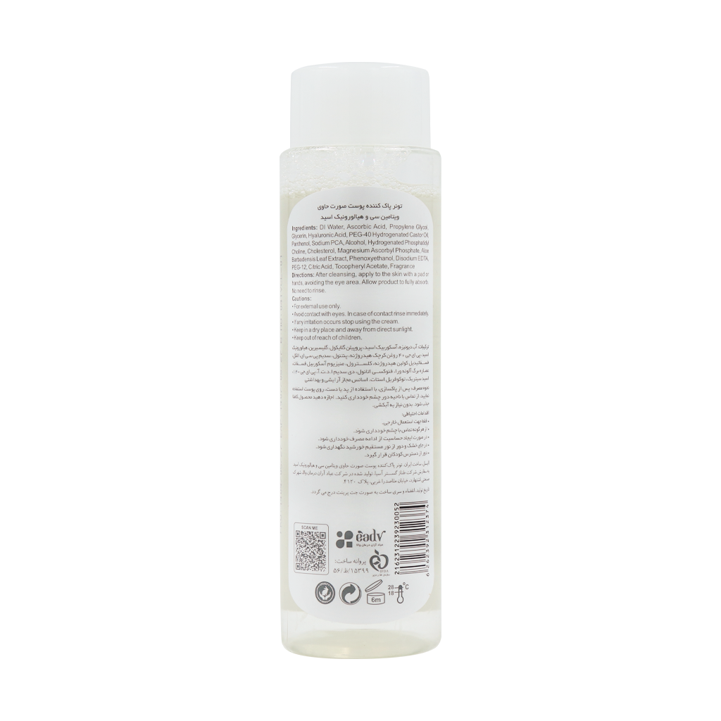 - از طرف دیگر حضور ویتامین سی به این تونر خاصیت روشن کنندگی و شفاف سازی میبخشد. ویتامین سی به خنثی کردن رادیکالهای آزاد کمک نموده و رنگ پوست را یکنواختتر میسازد، در نتیجه شادابی و درخشش طبیعی پوست بیشتر به چشم میآید.