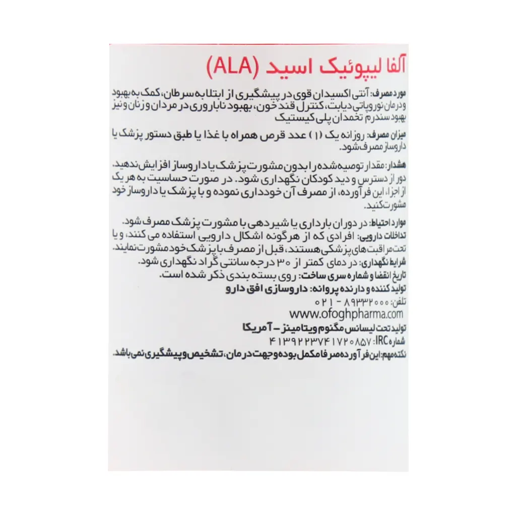 | آلفا لیپوئیک اسید | 300mg | ** |