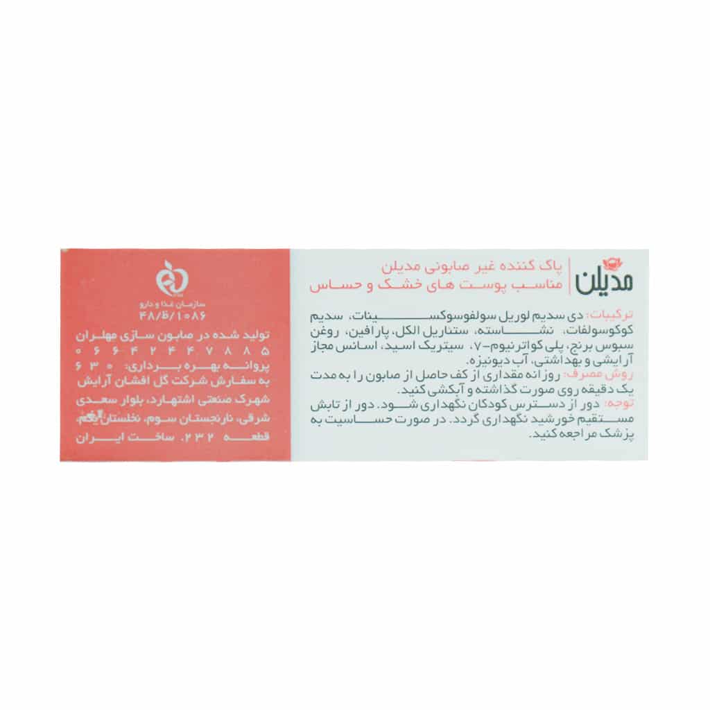 پن مخصوص پوست های خشک و حساس مدیلن و سایر پن های شرکت گل افشان آرایش را می توان اولین شوینده های غیر صابونی تولید داخل دانست که با pH اسیدی طبیعی پوست سازگار هستند. پن مخصوص پوست های خشک و حساس مدیلن باعث نرمی و لطافت پوست می شود و مانع از دست دادن بیش از حد آب از سطح پوست می شود. این محصول دارای پلی کواترنیوم ۷، نشاسته گندم و روغن برنج است که هر یک فواید بسیاری در نرم کردن و لطافت پوست دارند. پن مخصوص پوست های خشک و حساس مدیلن به دلیل اینکه عاری از مواد صابونی و مخصوص پوست های حساس طراحی شده است، حتی برای استفاده روی پوست حساس کودکان نیز مناسب است. این شوینده ی ملایم حساسیت را کاهش و نرمی و رطوبت پوست را افزایش می دهد.