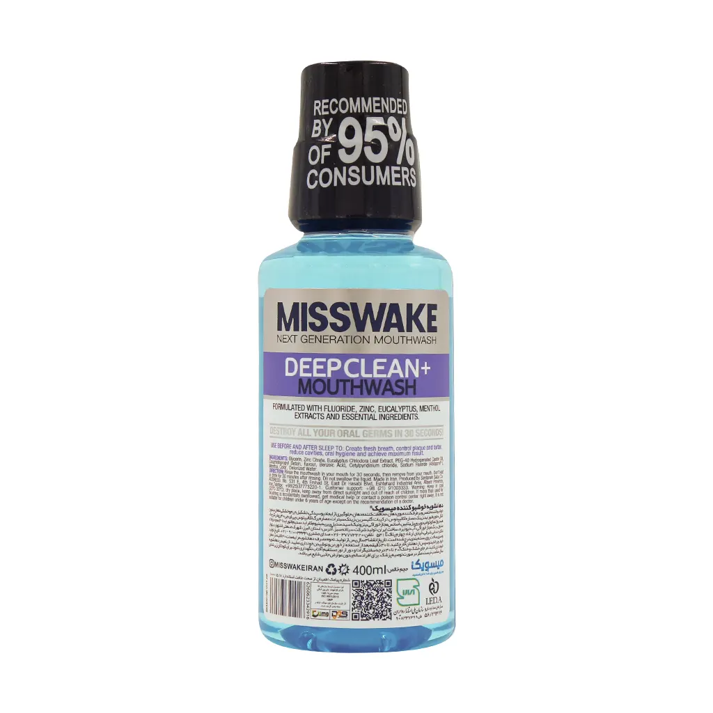 دهانشویه خوشبو کننده میسویک مدل deep clean با ویژگیهای منحصر به فرد خود، به عنوان یک خوشبو کننده تنفس عمل مینماید و بوی نامطبوع دهان را برطرف نموده و تازگی را به تنفس شما باز میگرداند. دهانشویه دیپ کلین میسویک از مواد محافظتی قدرتمندی برای دهان شما بهره میبرد. این فرمولاسیون ویژه به طور موثری از پوسیدگی دندانها پیشگیری نموده و از تشکیل جرم و خشکی دهان محافظت مینماید. البته بدون اینکه الکل مضری را به دهان شما اضافه نماید. از آن سو با دارا بودن فلوراید، زینک و عصاره اکالیپتوس، این دهانشویه علاوه بر بهبود تنفس، به حفظ سلامت دهان و دندان کمک میکند. زینک نیز به عنوان یک لایه محافظ روی دندانها، مانع از تشکیل جرم و پوسیدگی میشود. عصاره اکالیپتوس به کار رفته در دهانشویه خوشبو کننده نیز با خواص ضد عفونی کننده خود، حفظ تازگی و سلامت دهان را بر عهده دارد.