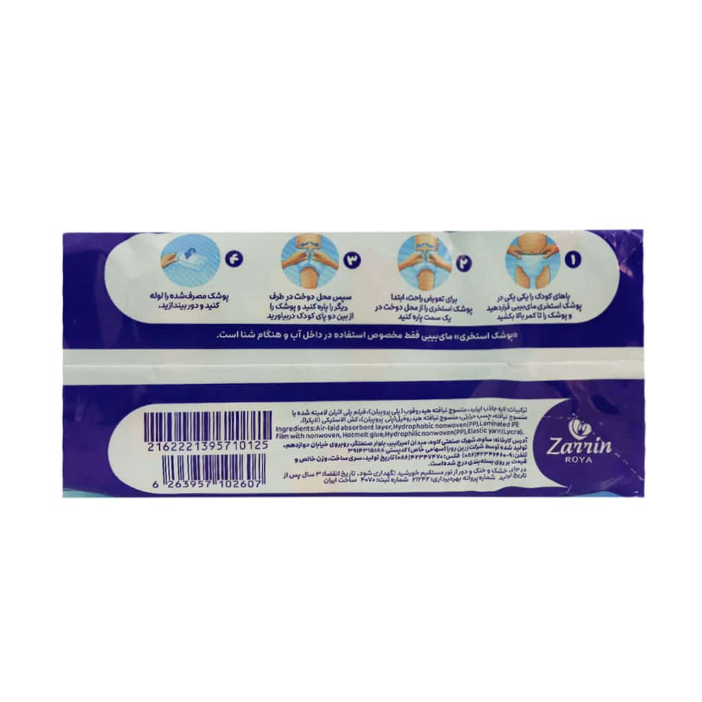 - در آب متورم نمیشود و بدون اینکه پوشک سنگین یا شل شود به آزادانه حرکت کردن کودک کمک میکند.