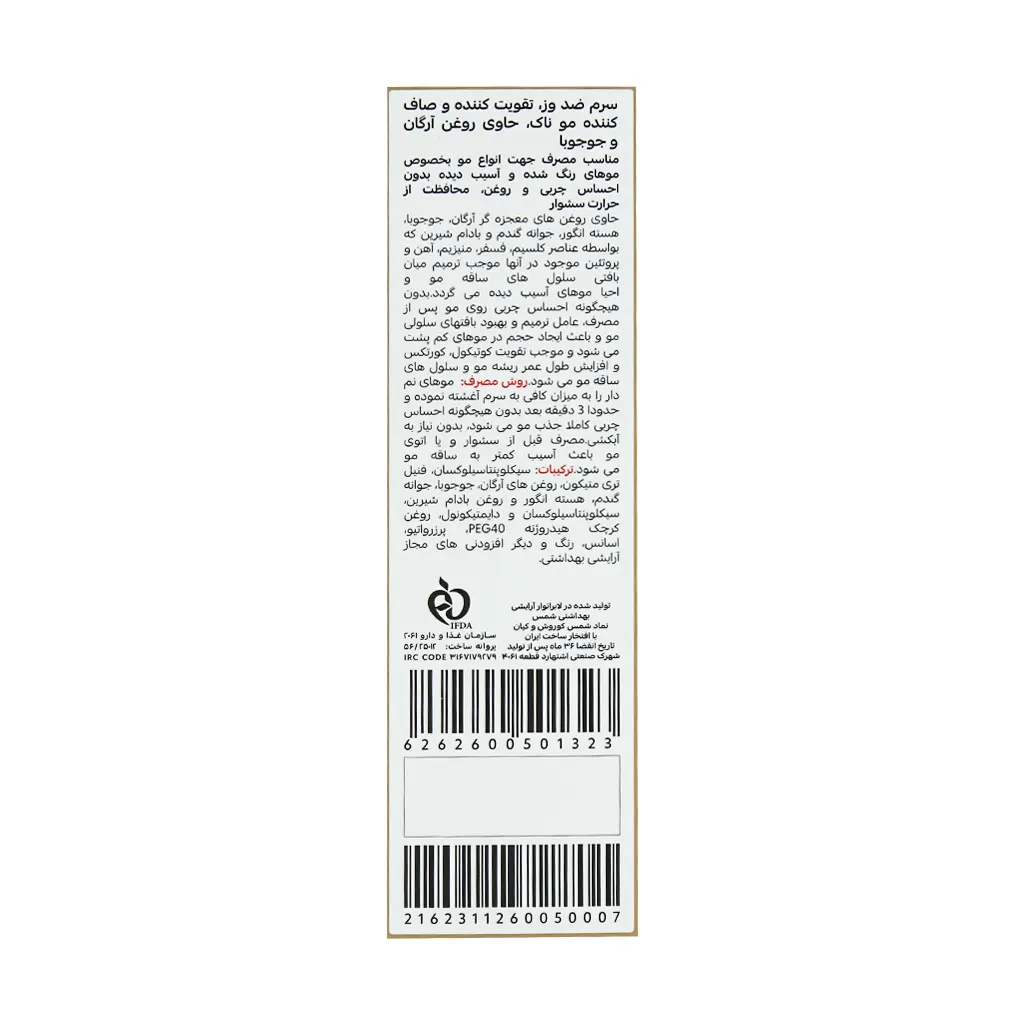- حاوی روغن آرگان و روغن جوجوبا