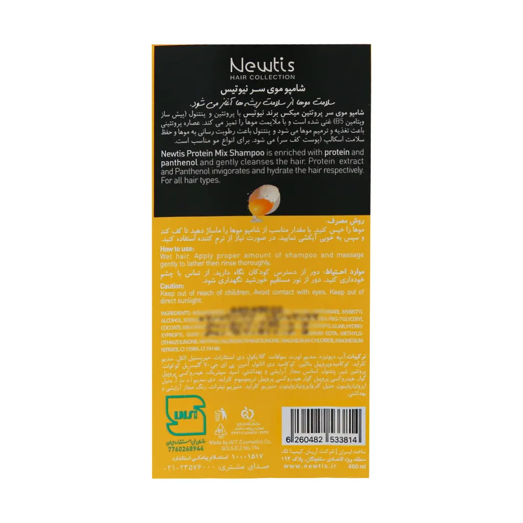 شامپو تخم مرغی پروتئین میکس نیوتیس