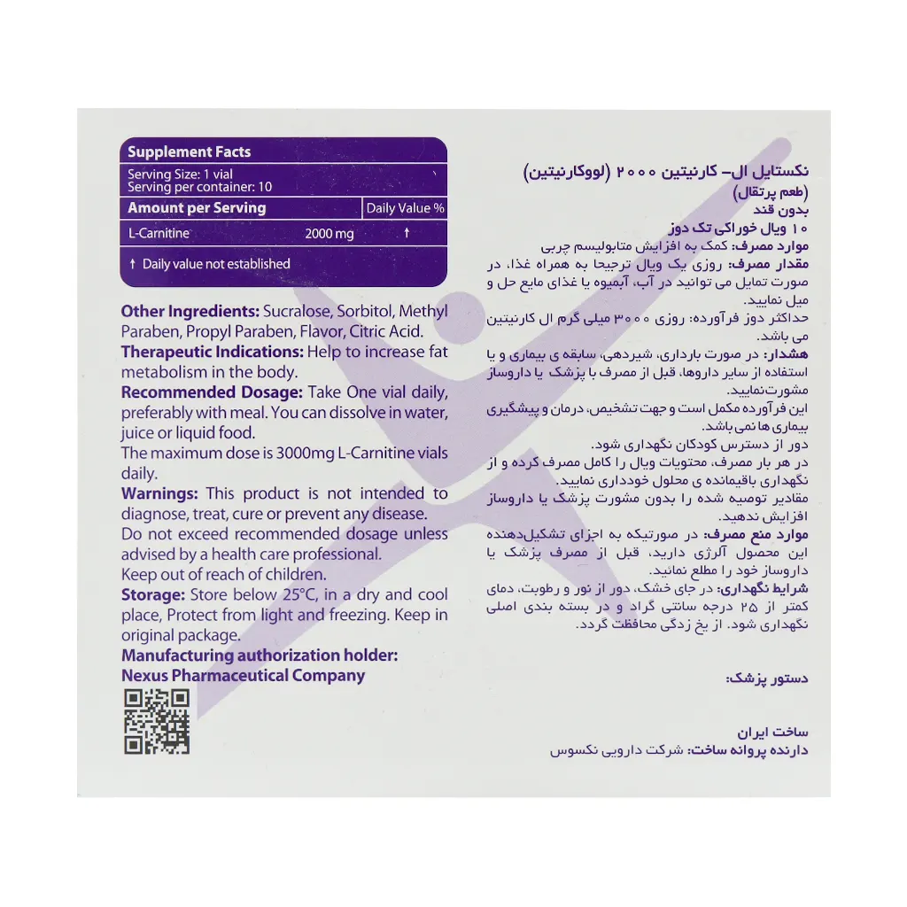 شرایط نگهداری ال کارنیتین 2000 میلی گرم نکستایل