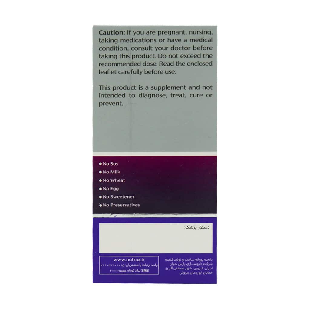 در صورت حساسیت به هر یک از اجزای فرآورده و یا بروز هر گونه عوارض گوارشی، مصرف را متوقف و به پزشک یا داروساز مراجعه نمایید.