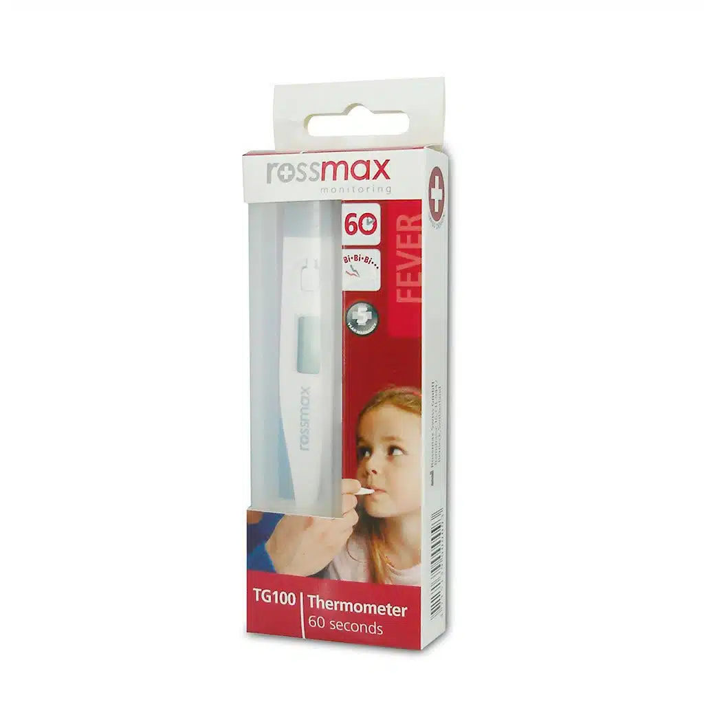 تب سنج دیجیتال رزمکس مدل TG100 دارای قابلیت نمایش دما در واحدهای اندازهگیری سانتیگراد و فارنهایت است. قابلیت اندازه گیری دمای بدن در 60 ثانیه را دارا است و همچنین قابلیت عیبیابی خودکار توسط خود دستگاه را نیز دارد.