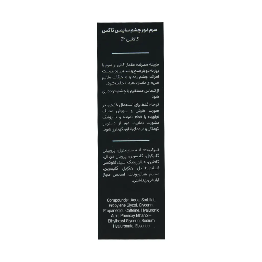 - سرم دور چشم ساینس تاکس مدل کافئین قابل استفاده برای انواع پوست از جمله پوستهای حساس