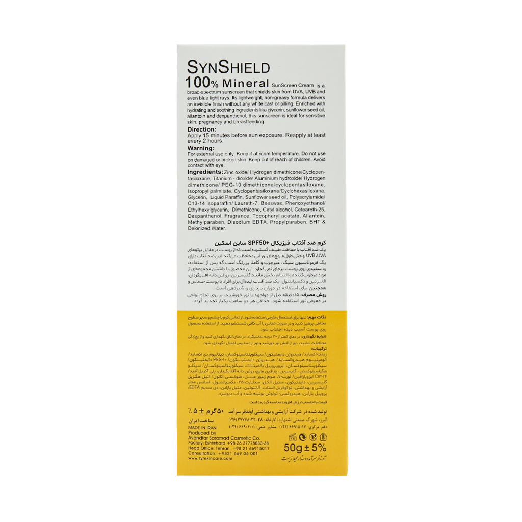 ویژگی های کرم ضد آفتاب مینرال ساین شیلد SPF50 ساین اسکین