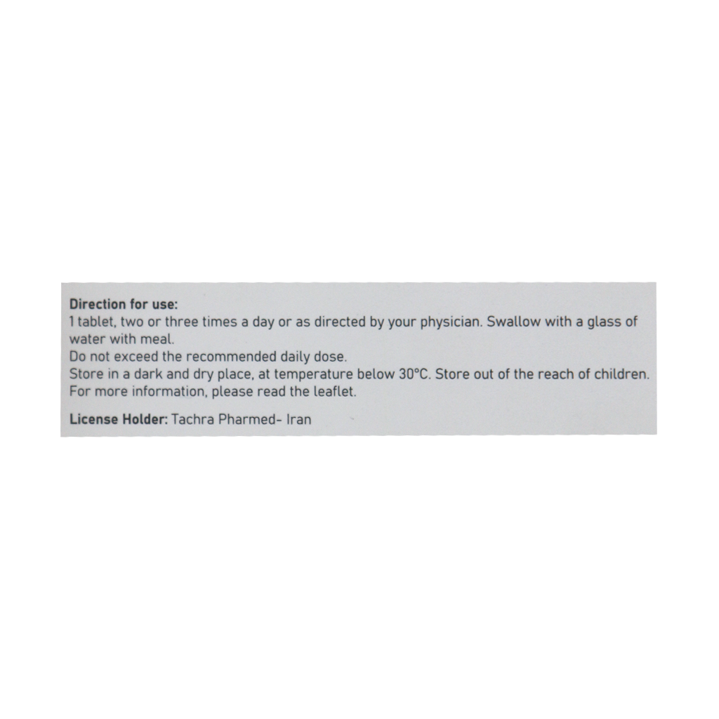 1 قرص، دو یا سه بار در روز با یک لیوان آب همراه غذا یا طبق دستور پزشک معالج.