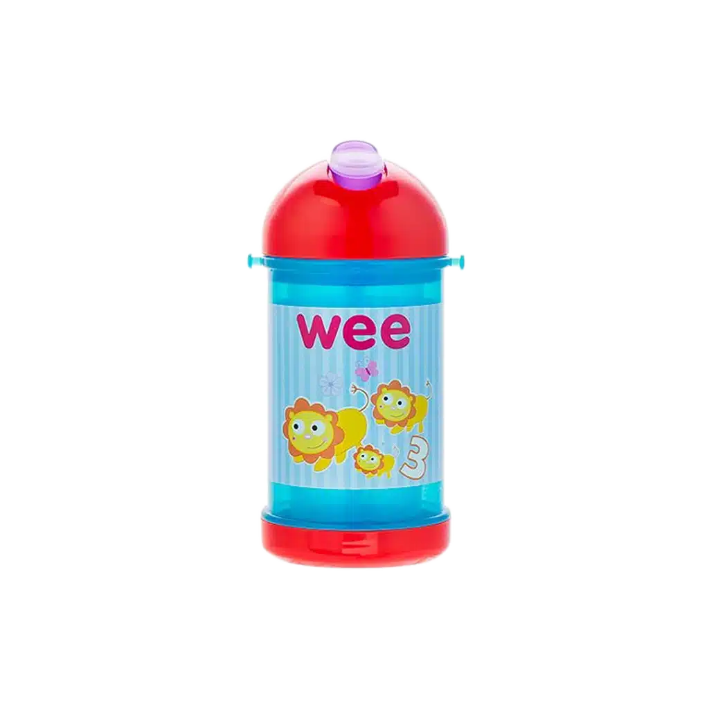 لیوان نی دار وی بیبی مناسب کودکان بالای ۱۸ ماه دارای درپوش محافظ برای جلوگیری از ورود آلودگی و نشت مایعات به بیرون می باشد. نی تعبیه شده بر روی در این لیوان برای استفاده راحت تر کودک می باشد.